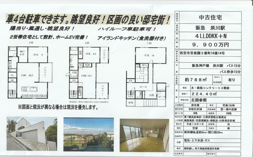 西宮市苦楽園三番町 中古住宅 価格9900万円